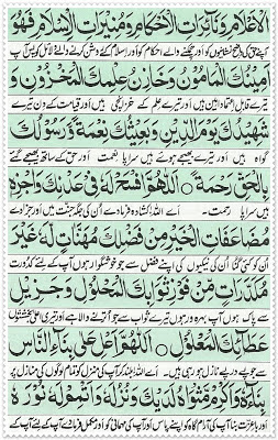Transliteration: A’allami wanairattil ahkammi wa’munirattil islami fahowa aminukkal mamunnu wakhazinu ilmikal makhzunni washahidduka youmad dinni wabaeesukan nieematiou wa Rasuloka bilhaqqi rahma allahummas sah laho fii adnika wajzihi muza’afattil khairri min fazlika muhanna’atin laho gairra mukddaratim min fouzzi sawabbikal mahlulli wajazilli ataeekal ma’alul allahumma aa’alli alla bina’iin nassi bina’aho wa’akrim maswaho adaika wanuzulaho wa’atmim laho nurraho